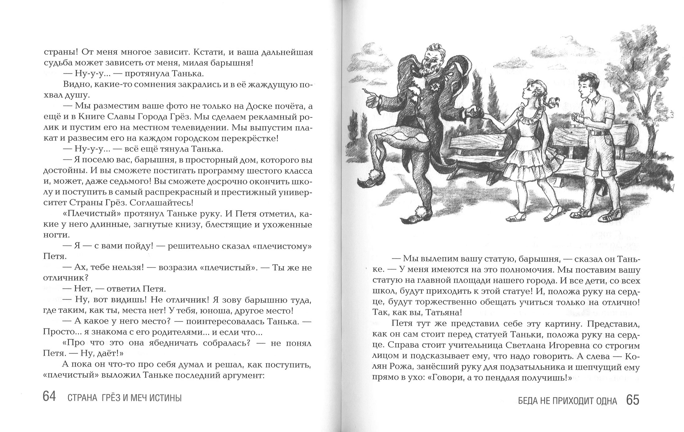 Страна грез и меч истиныШипошина ТатьянаПятиклассник Петя Хлебушкин вместе с отличницей-зазнайкой Таней Синициной, хулиганом Колей Рожковым и самым обычным котом из супермаркета чудесным образом переносятся в Страну Грёз — сказочное государство, в котором живут герои всех сказок мира. Там они попадают в плен к трём странным персонажам, правителям Страны Грёз, которые уговаривают ребят добровольно подчиниться их воле. Если Петя, Таня и Коля согласятся уподобиться своим хозяевам — стать такими же злыми, гордыми, тоскливыми и жестокими, как они, — им будут дарованы безграничные богатство, слава и власть. Чтобы выбраться из плена и вернуться обратно в свой мир, друзья должны понять, почему именно они перенеслись в сказочный мир и каковы тайные планы повелителей Страны Грёз. Ребят ждут большие испытания — им придётся честно признаться самим себе в своих недостатках и ошибках, разобраться, где добро, а где зло, преодолеть страх и сделать самый главный выбор в своей жизни. Для детей среднего школьного возраста. Допущено к распространению Издательским Советом РПЦ ИС Р22-124-0584. Оглавление Вступление – 3 |