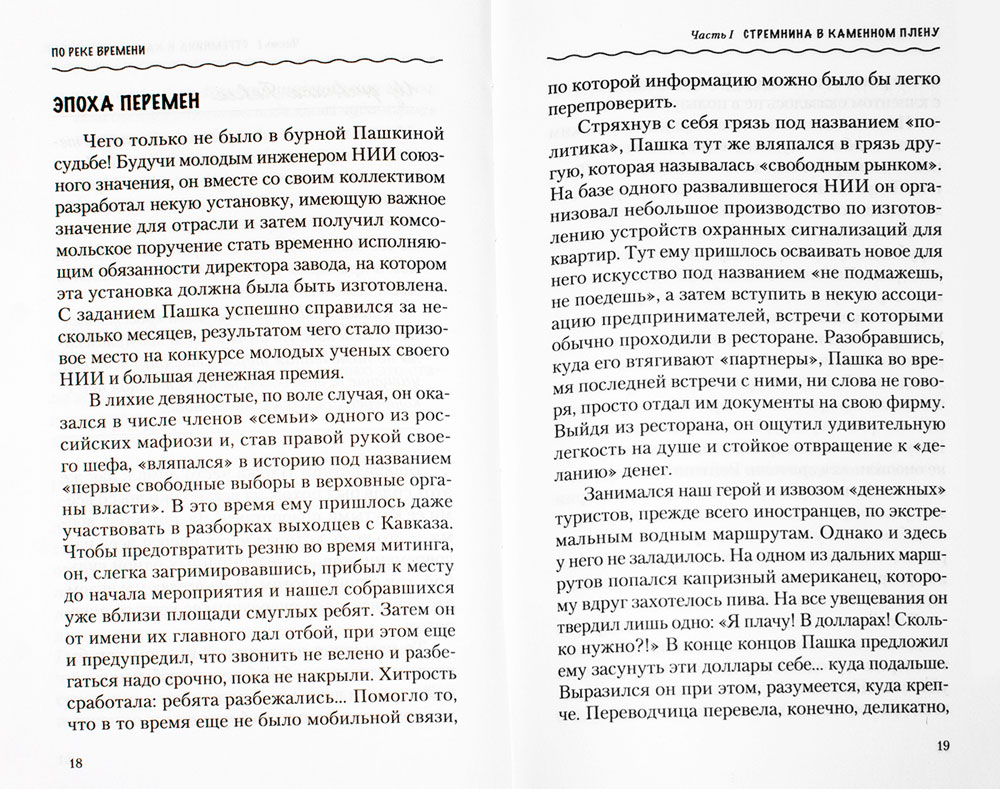 По реке времени: Выплыть, выжить, повзрослетьЭпоху перемен и социальных потрясений часто сравнивают с бурно мчащейся горной рекой. Уцелеть среди ее стремнин, выжить, сохранив при этом свои нравственные принципы, и остаться человеком — задача нетривиальная порой даже для взрослых людей. Что уж говорить о подростках, только вступающих в жизнь? Как не погибнуть им, если только рядом не будет мудрого и доброго взрослого, готового поддержать и направить на верный путь? Роман «По реке времени» рассказывает истории из жизни вполне реальной сельской школы и ее учеников — членов кадетского отряда «Кольчужинский спецназ». Об этом отряде, а также о его бессменном руководителе — главном герое романа — эта книга, которая читается легко и интересно... Допущено к распространению Издательским Советом РПЦ ИС Р25-421-0472. Оглавление От редакции - 5 |