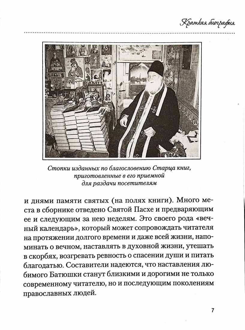 Каждый день с отцом НаумомНаум (Байбородин)В этом сборнике, составленном духовными чадами известного старца Троице-Сергиевой Лавры архимандрита Наума (Байбородина; 1927–2017), помещены слова из его проповедей, наставлений и бесед. Это своего рода «вечный календарь», который может сопровождать читателя на протяжении долгого времени и даже всей жизни, напоминать о вечном, наставлять в духовной жизни, утешать в скорбях, возгревать ревность о спасении души. Допущено к распространению Издательским Советом РПЦ ИС Р23-304-0091. |