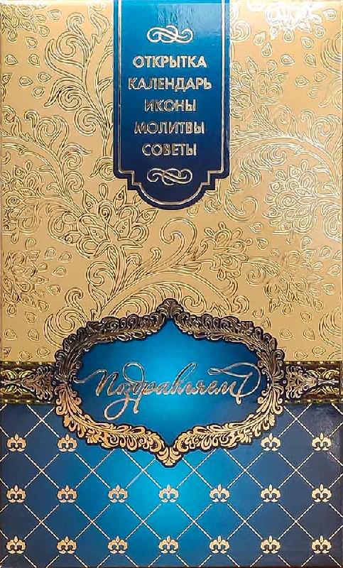 Подарочный набор "Поздравляем: Открытка, календарь, иконы, молитвы, советы" (синий)